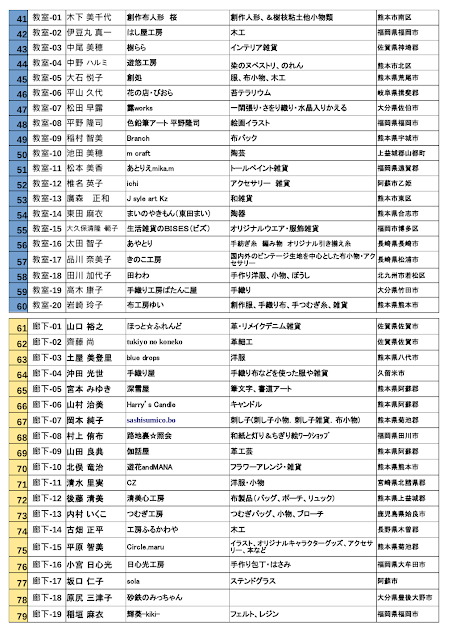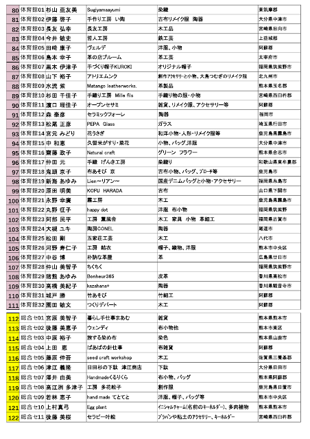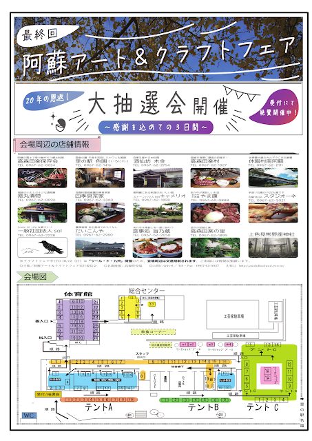今年最後です残念ですが10月11、12、13見にきてね^^第20回 阿蘇アート&クラフトフェアーに出ます今回はこのイベントの最後でもあるのです残念ですが最後のイベント「阿蘇」皆様おいでくださいぱたんこ屋は教室19番いつもの場所でお待ちしています寂しいですがニコニコワクワクで皆様をお待ちしています今回親しい友人たちも参加していますので楽しいイベントになると思います沖田「糸織り屋」廊下4番岩崎「布工房ゆい」教室20番松田「さっちゃんの一貫張り」さつゆワークス教室7番みっちゃん「砂鉄」廊下の18番出てます探しにきてね10月11、12、13土曜日曜月曜10時から17時最終日16時です最後の阿蘇是非是非会いにきてね熊本県南阿蘇町上色見1390−1旧上色見小学校高木康子「ぱたんこ屋」090−2280−8556 表示を縮小