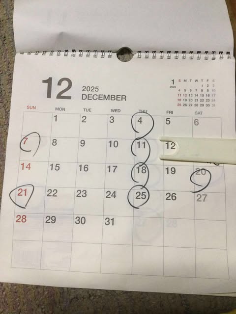 カレンダー調整宮砥工藝舎12月6日教室予定の日に神社掃除の連絡はーいでお休み「教室の方」12月6日は休みます090−2280−8556大分県竹田市次倉4459ー1二階さをり織り陶芸教室は月に二回第2第4日曜日十三時三十分から1500¥体験なしFBタカギイツオまで予約機織り教室は教えません教えない教室です月謝5000¥十時から一五時体験5000¥お弁当持参できてね11月13、14、15、16のみ2時間3000¥あやとりさんの糸で機織りしまーすこちらも予約メッセージくださいね^^